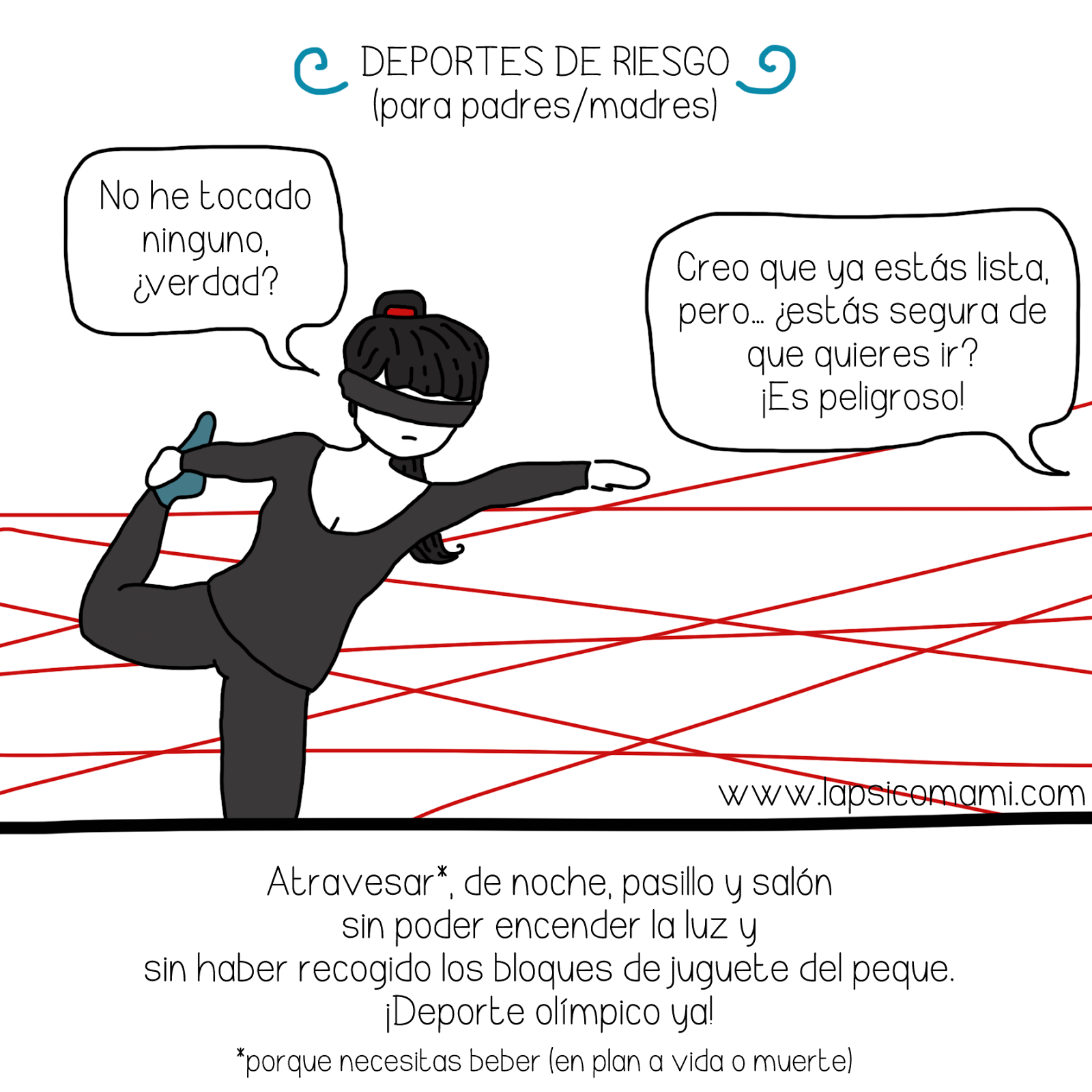 Así que vamos, que nos digan a nosotros que no hay adrenalina en nuestras vidas. Y para demostrarlo, hago un repaso de algunos de los deportes de riesgo en los que, voluntariamente o no, participamos a menudo papis y mamis. Porque eso de que los seres humanos aprendemos por ensayo y error es UNA VERDAD COMO UN TEMPLO.