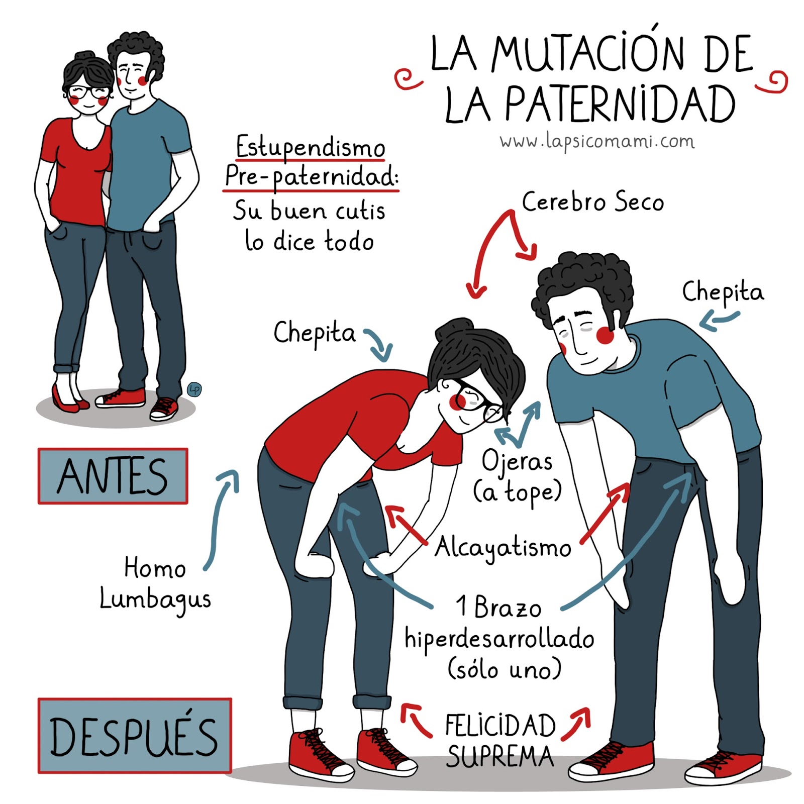 • Alteración en el habla: no es física per se, pero ahí está. Al tiempo que nuestro retoño va mejorando sus habilidades conversacionales las nuestras se van yendo al carajo, al fondo del carajo, según entras al carajo… pues al final, donde casi ya no hay nada. Los monosílabos son nuestros amigos cuando el cerebro seco de sueño no da pa más.